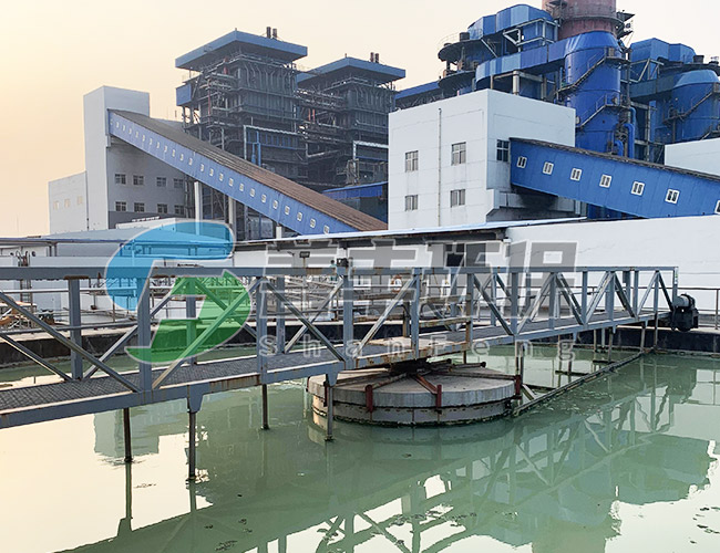 中心傳動驅動機構推動刮泥機構沿中心旋轉,固定于刮臂上的刮板將泥由池邊逐漸刮至池中心的集泥斗中。刮泥板曲線對數(shù)螺旋線形,受力均勻,刮泥干凈,當池底遇有障礙時,能自動提耙,保護機器不受傷害,驅動機構可有扭矩保護裝置,工作更加安全。