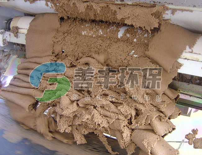 污泥經(jīng)投加凝聚劑后進(jìn)行充分混合反應(yīng)之后流入濃縮段的進(jìn)料分配器,將污泥均勻分布到傾斜式的濃縮段上,并在泥耙的雙向?qū)韬椭亓ψ饔孟拢勰嚯S著濾帶的轉(zhuǎn)動,迅速脫去污泥的游離水。重力脫水后濃縮污泥經(jīng)反轉(zhuǎn)機(jī)構(gòu)將污泥輸送至帶式壓濾機(jī)的重力脫水段進(jìn)一步脫水。然后喂入“S”形壓榨段,在“S”形壓榨段中,污泥被夾在上,下兩層濾布中間,經(jīng)若干個不同口徑輥筒反復(fù)壓榨,使污泥再一次脫水,醉后通過刮將泥餅刮落,而上下網(wǎng)在運(yùn)行過程中不斷地被自動清洗。