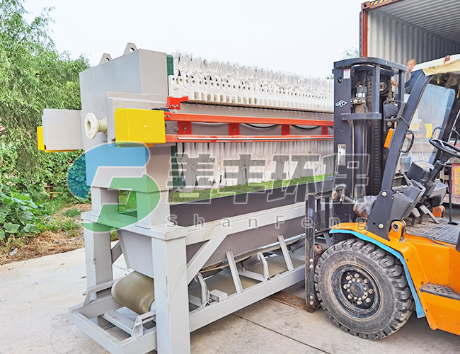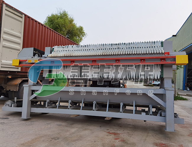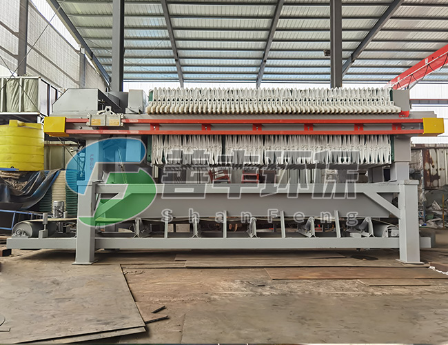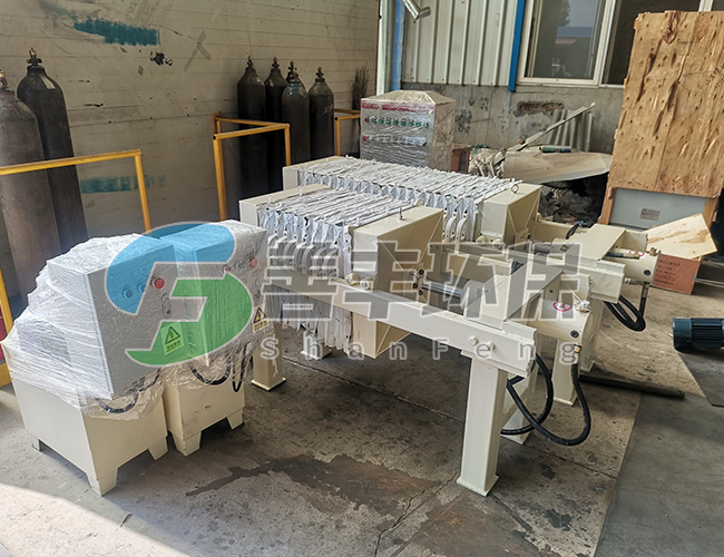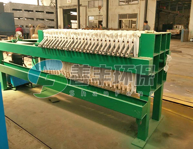 懸浮液用料泵送入濾機每個密閉的濾室,在壓力作用下,濾液透過濾層及濾布,經(jīng)濾布出液口排出,濾渣則留在濾框內,從而達到固液分離的目的。