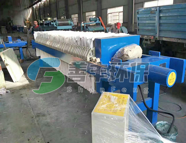 懸浮液用料泵送入濾機每個密閉的濾室,在壓力作用下,濾液透過濾層及濾布,經濾布出液口排出,濾渣則留在濾框內,從而達到固液分離的目的。