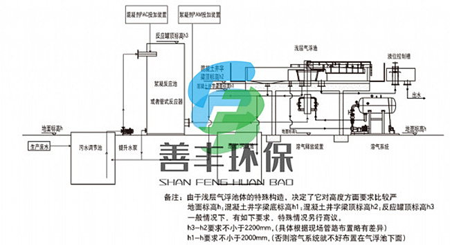 SF型淺層氣浮裝置,是一種快速氣浮系統,它在傳統氣浮理論的基礎上,又成功的運用了“淺層理論”和“零速原理”,通過精心設計,集絮凝、氣浮、撇渣、刮泥為一體,是一種水質凈化處理的設備。”