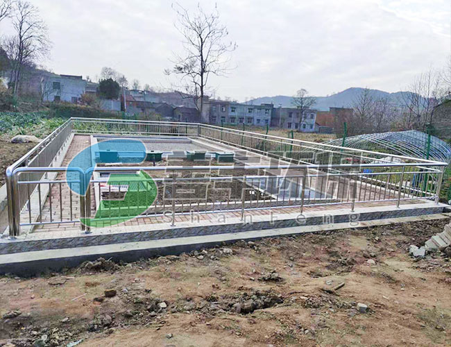 3、生化池采用生物接觸氧化法,一體化污水處理設備填料的體積負荷比較低,微生物處于自身氧化階斷,產泥量少,僅需三個月(90天)以上排一次泥(用糞車抽吸或脫水成泥餅外運)。