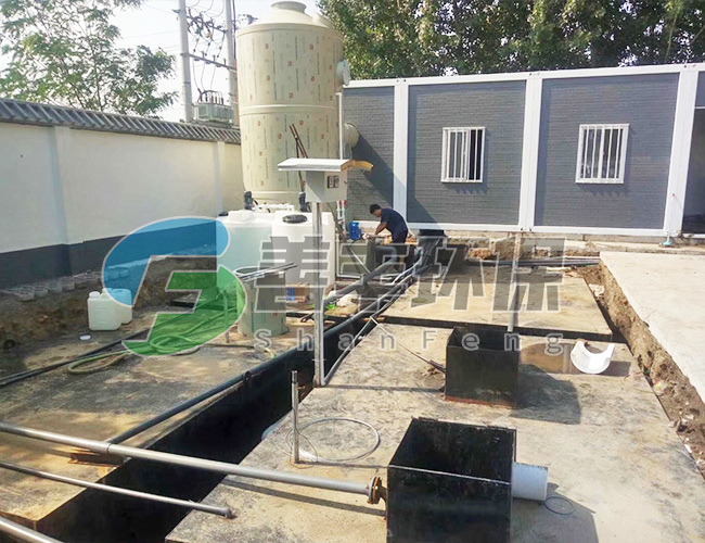 3、生化池采用生物接觸氧化法,一體化污水處理設備填料的體積負荷比較低,微生物處于自身氧化階斷,產泥量少,僅需三個月(90天)以上排一次泥(用糞車抽吸或脫水成泥餅外運)。