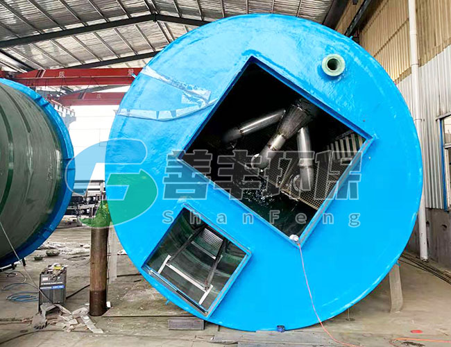 一體化預制泵站是一種集潛水泵、泵站設備、除污格柵設備、控制系統及遠程監控系統集成的一體化的玻璃鋼一體化預制泵站。其特點具有機動靈活,泵站建設周期很短,安裝很簡便。主要以復合纏繞玻璃鋼筒體為主體,內設潛污泵、自動耦合裝置、管道、閥門、控制系統、爬梯、維修平臺等,根據用戶需求還可在進水管道后加設提籃格柵或粉碎型格柵,筒體上設有玻璃鋼頂蓋,是把所有設備及儀表集成在一起的成套設備。